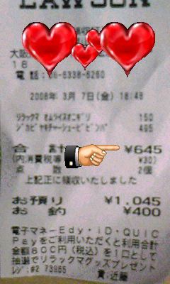 2008/03/07 Category : 雑記 むしごろしの… 大化の改新♪なんて覚え方ありましたよね。まぁ私はその覚え方に頼ったことはありませんが(*^o^*)だって、年号暗記が要求される学年になるまでに古代にハマってましたから(笑)どんだけ年期入ってんだよ!笑確か、ハマりはじめたのって小4かそんくらいだったように思います。あ、でもそんときは健全でしたよ?!いや、ホントですって。だってそんな若い身空で腐っちゃってどうすんの、終わってるじゃん(笑)で、今日の画像。……いや、別にどうでもいいんだけど。今日ロ○ソンに行ったらですね、こーゆーことが。なんか、どうでもいいんだけどすごくね?!645円って。645円っすよ奥さん!なんか店員さんに「645円になります」って言われたときに、あれ?この数字どっかで…って思ったわけですよ。そしたら……645じゃん!大化の改新だよ!!うわー、テンション上がる(笑)…って、645っていったら親愛なる入鹿さまがお亡くなりになった年ですけどね(°o°;;また何かあったらアップしたいと思います(せんでええよ(・∀・))でも…、1000年以降は難しいかも。貧乏なもので( ̄▽ ̄) [0回]